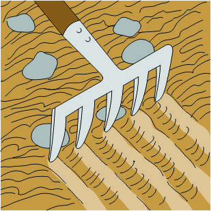G reblaţi pământul. Neteziţi sau bătuciţi pământul şi greblaţi-l din nou. La sfârşit, adăugaţi îngrăşământ şi greblaţi, pentru a stimula fixarea şi dezvoltarea rădăcinilor.